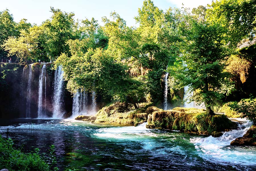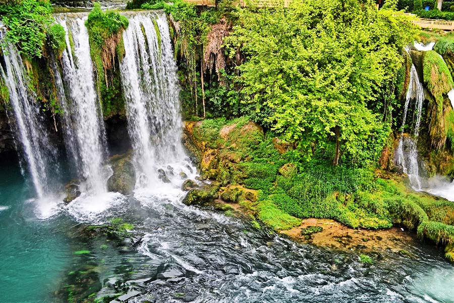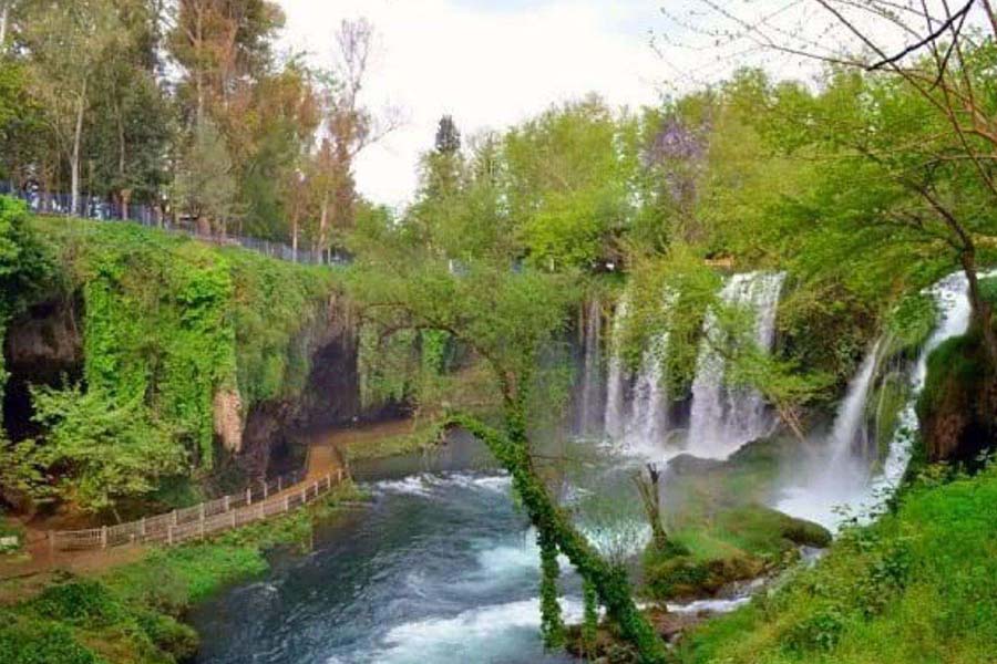 The water that flows by making a waterfall from above in Düdenbaşı is the water coming from the Kepez hydroelectric power plant. After Düdenbaşı, at the sheep regulator, the Düden Stream, which divides into two main channels, pours into the Mediterranean after 9 kilometers from a 40-meter-high travertine threshold in the east of Antalya.
